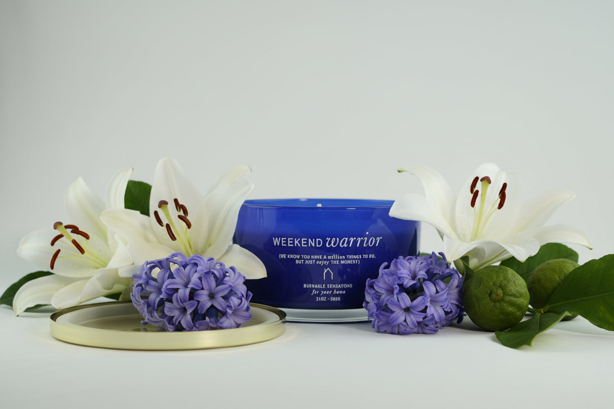 Escape into luxury with our Weekend Warrior Scented Candle. This premium 21oz four-wick creation blends bergamot, lily, and blue hyacinth into an intoxicating fragrance that elevates any room. Multi-wick design ensures even burn and powerful scent throw—your perfect retreat awaits.